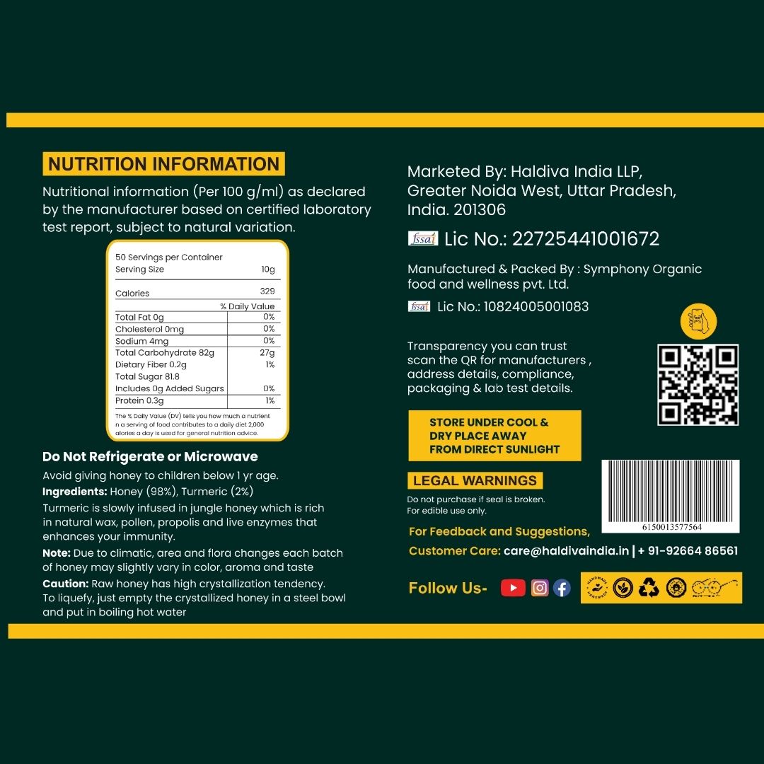 Rich in curcumin, antioxidants, and essential nutrients, Haldiva Amrit Honey helps boost immunity, improve digestion, fight inflammation, and promote radiant skin — all while offering a smooth, mildly spiced sweetness that tastes as good as it feels.